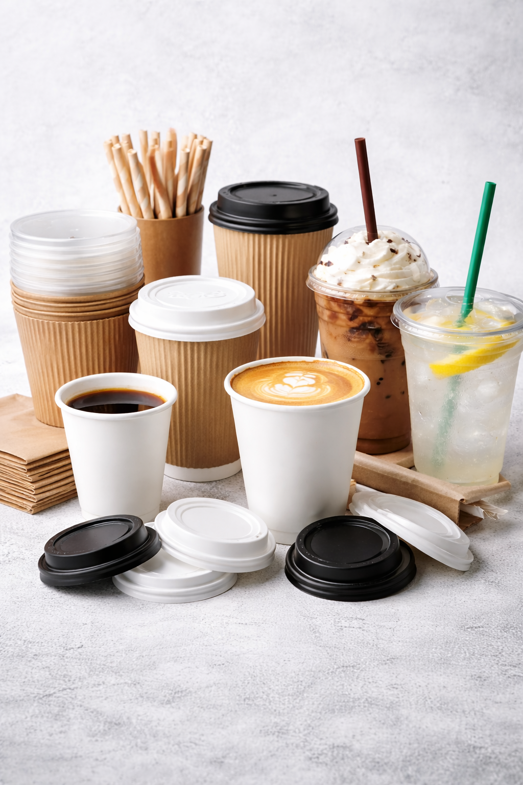 Premium coffee cups designed for cafés, restaurants, and takeaway service.